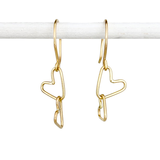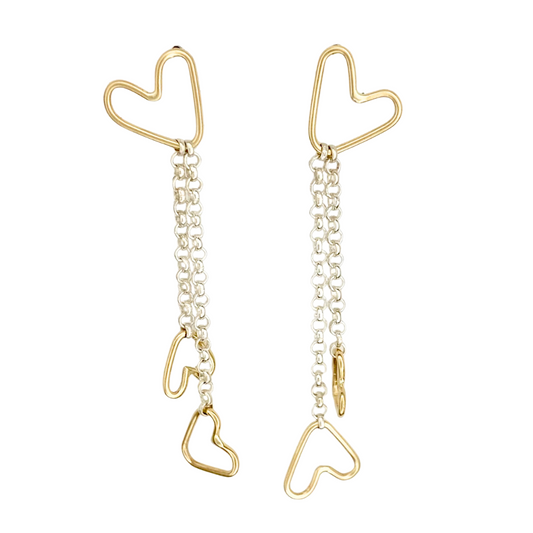 14k Gold Connected Hearts Bracelet with Silver Chain