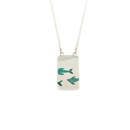 Rectangle Opalized Wood Pendant with Fish on the back