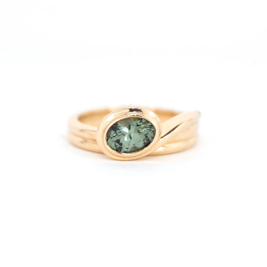 14k Wrapped Around Oval Sapphire Ring in White or Yellow Gold