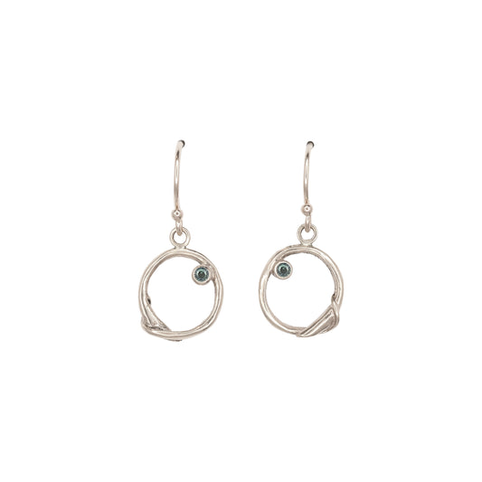 14k Tiny Circle Yellow or White Gold Dangles with Diamond or Sapphire