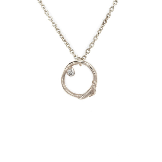 14k Tiny Circle White or Yellow Gold Necklace with Sapphire or Diamond