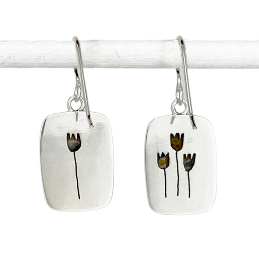 Rectangular Ocean Jasper Dangle Earrings with Tulips
