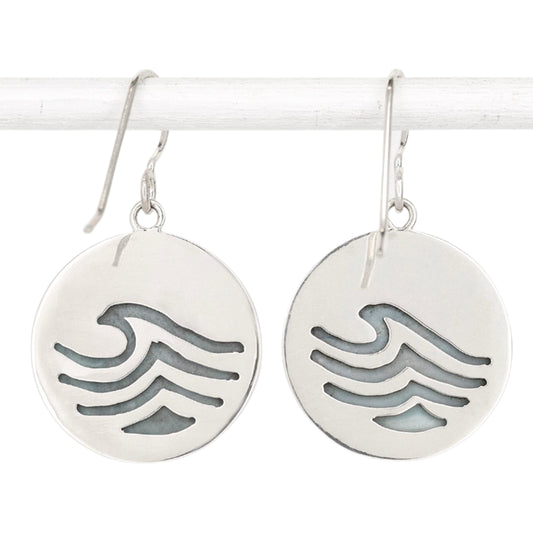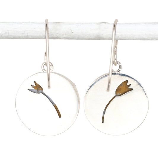 Round Ocean Jasper Dangle Earrings with Tulips on the Backs