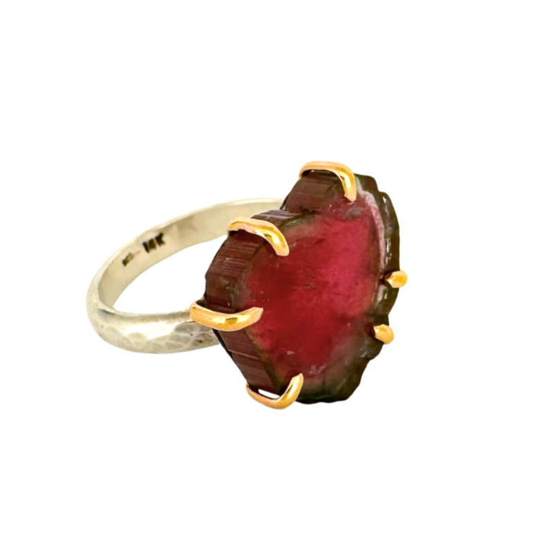 watermelon tourmaline crystal slice, 14k gold, sterling silver