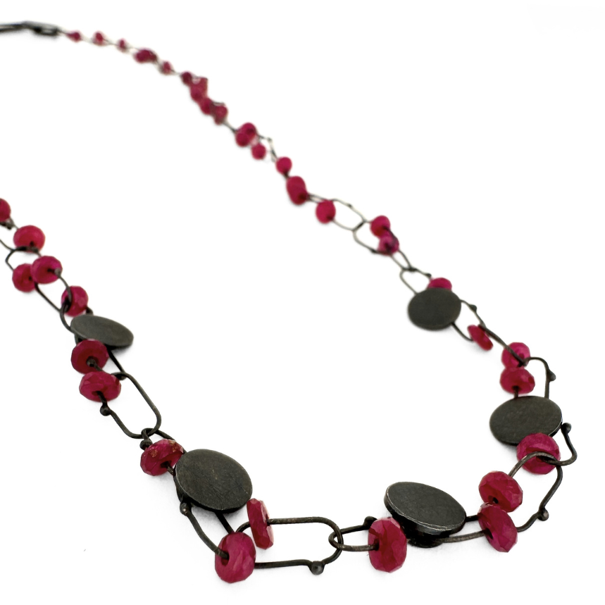 oxidized sterling silver, rubies