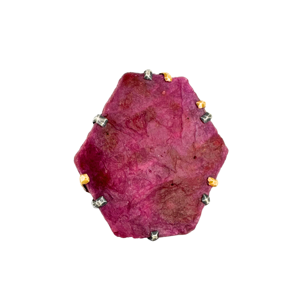 natural ruby crystal, 18k gold, sterling silver