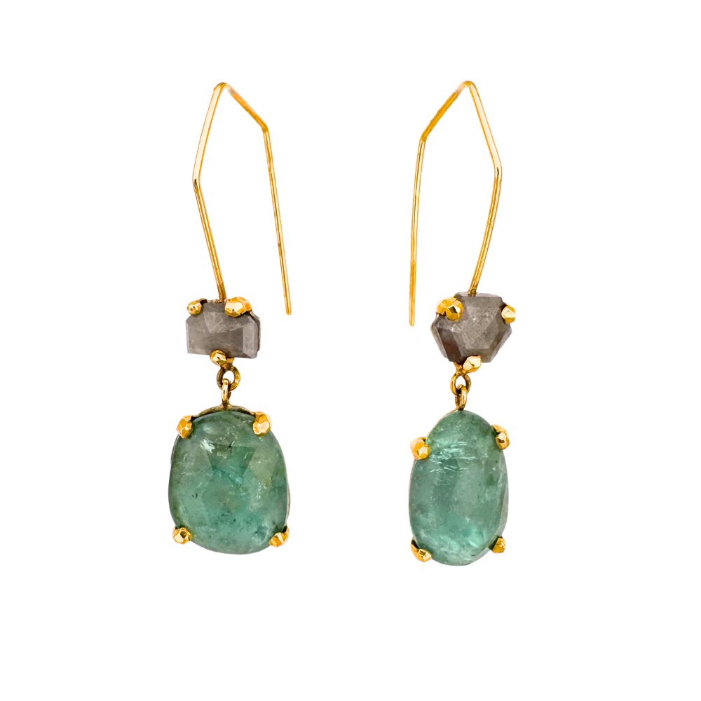 paraiba tourmaline, rosecut grey diamonds,18k gold, sterling silver