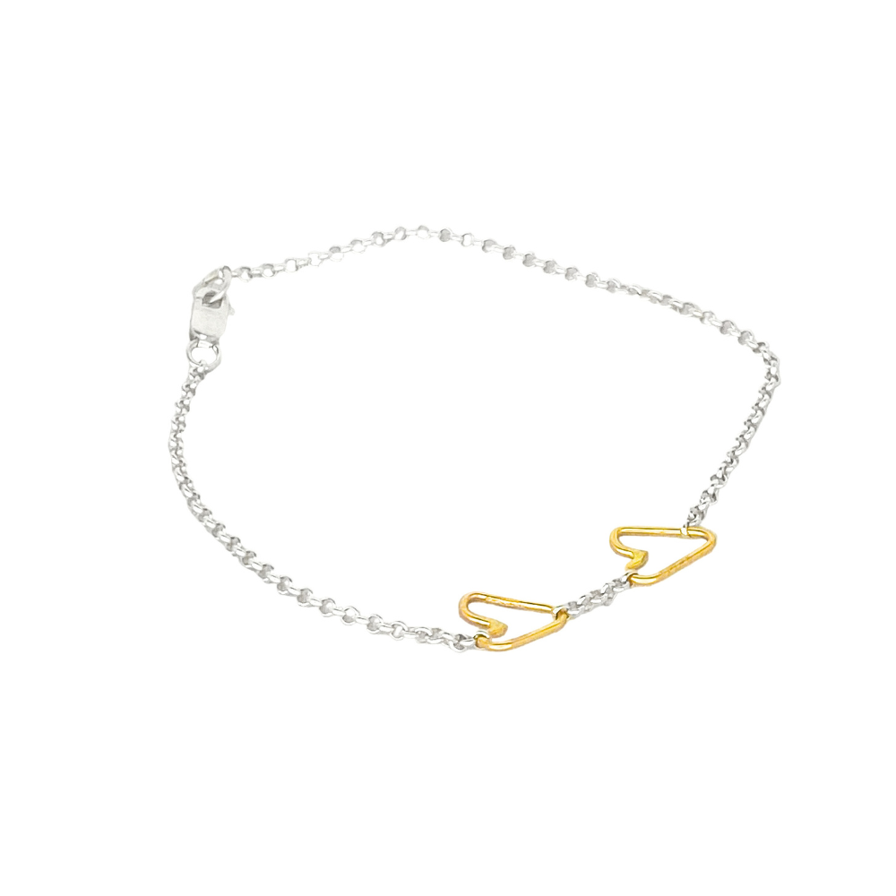 14k Gold Connected Hearts Bracelet with Silver Chain