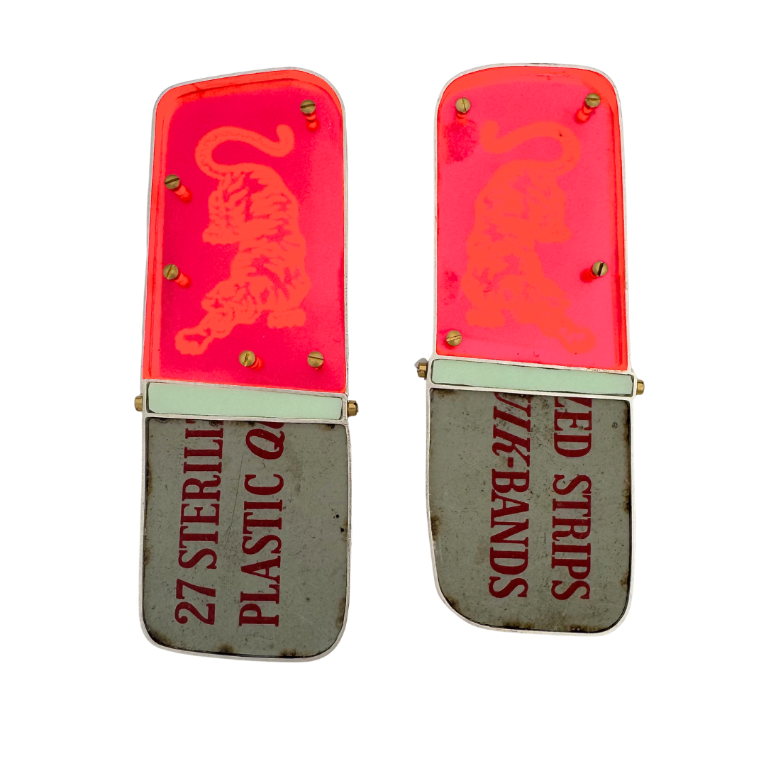 Vintage Tin, Sterling Silver, Acrylic, Signature Bolts In Brass