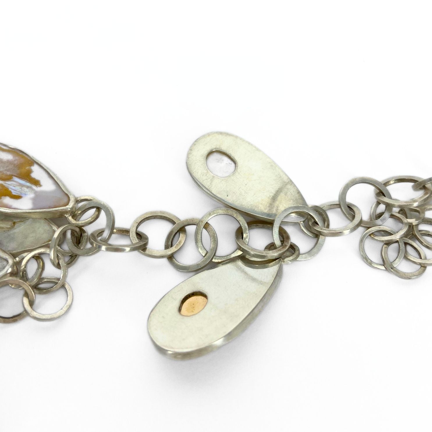 sterling silver, 14ky gold, blister pearls, handmade chain