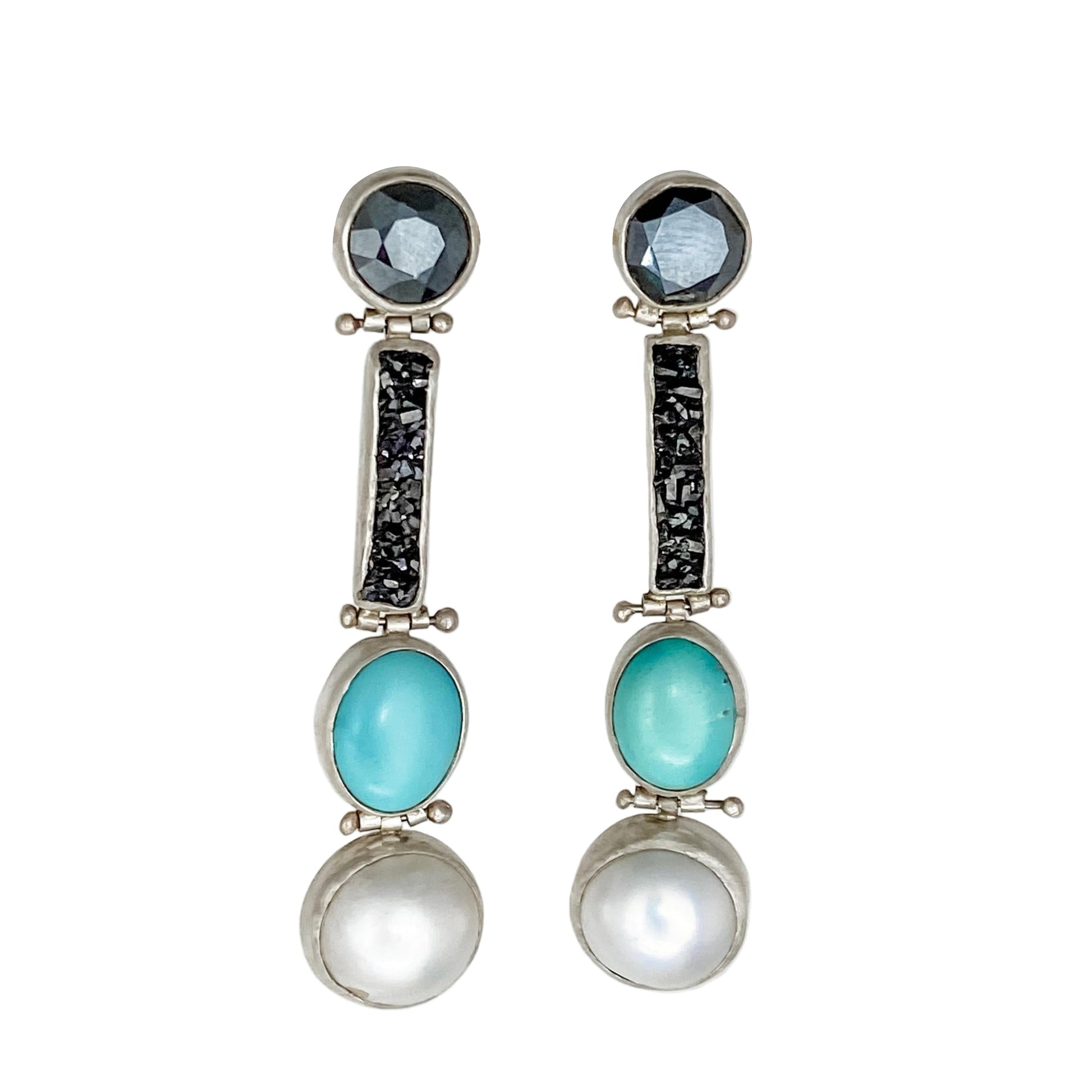 Hinged Earrings: Druzy, Pearl, Turquoise, and Hematite