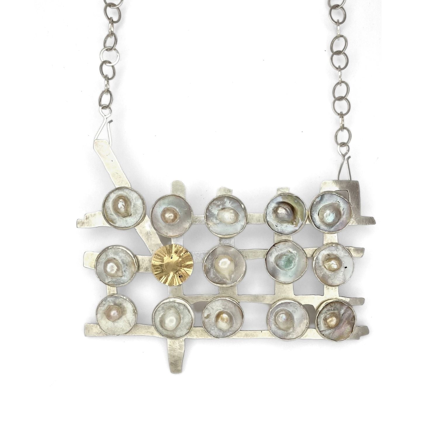 sterling silver, 14kt gold, blister pearls, handmade chain