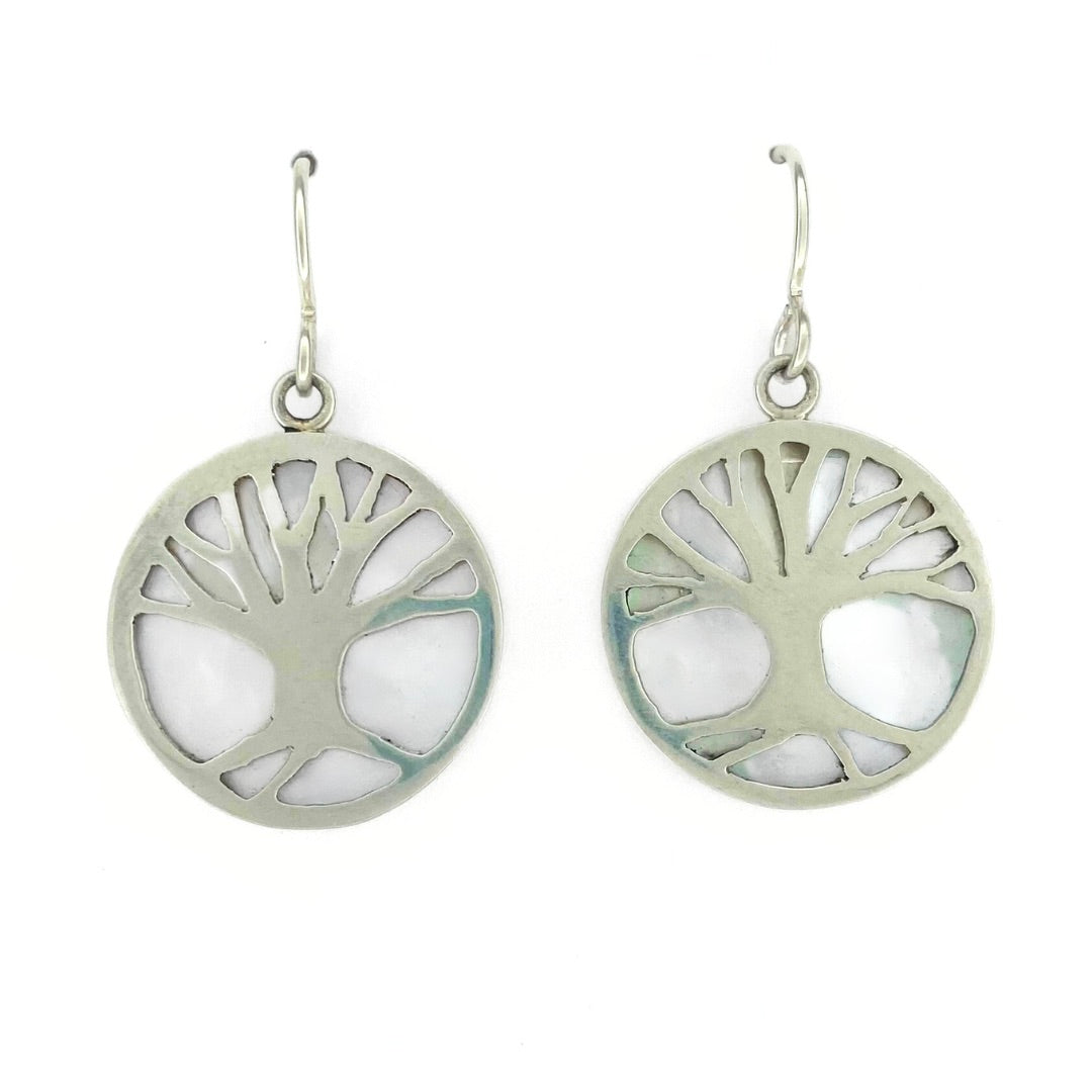 Mother of Pearl Dangle Earrings with Trees on the Back