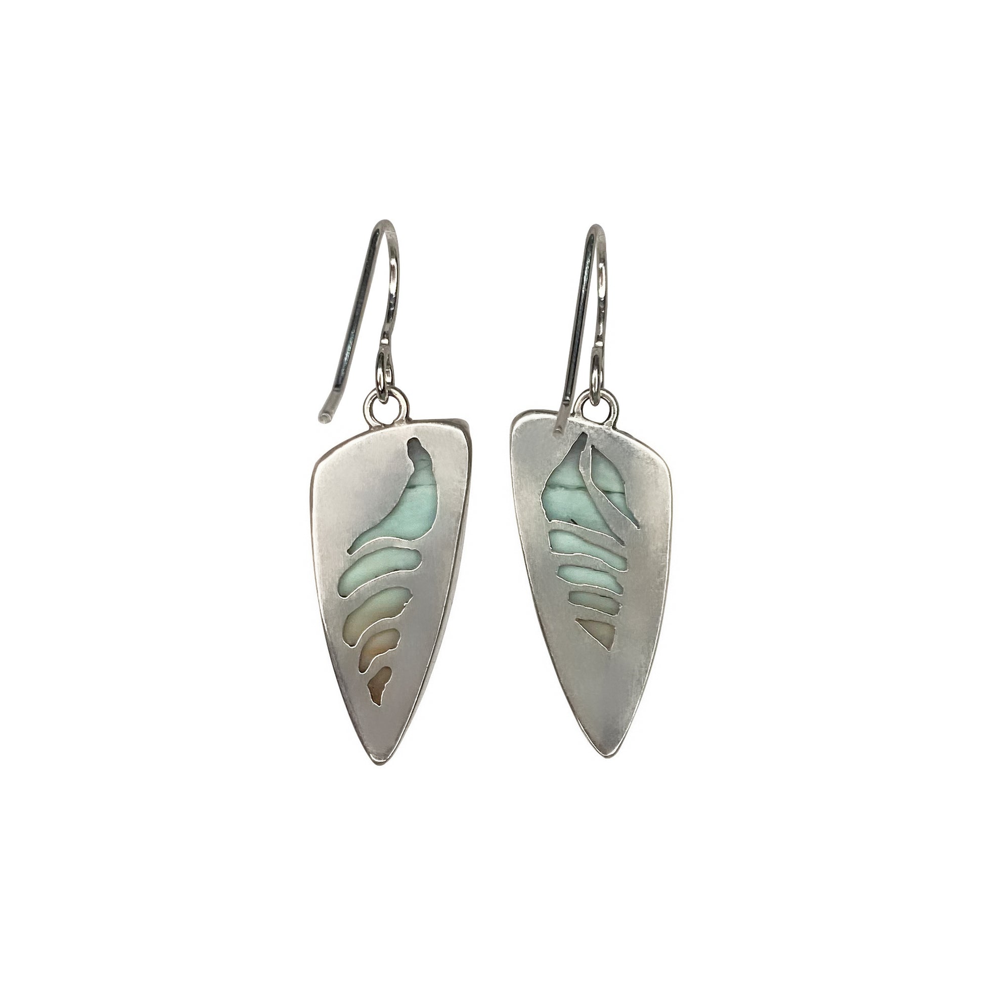 Opalized Wood Dangle Earrings with Conch on the Backs