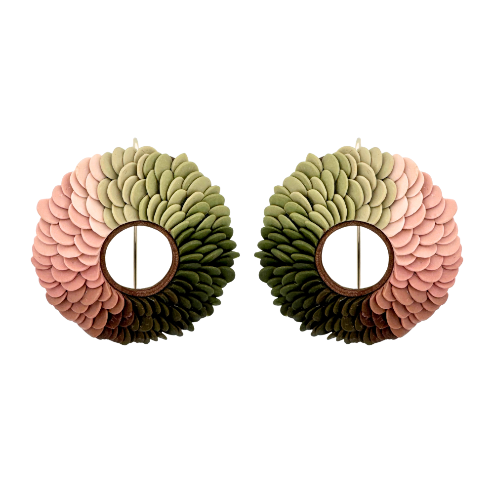 Polymer clay, handmade silver hooks, liquid Sculpey clay, glue gel