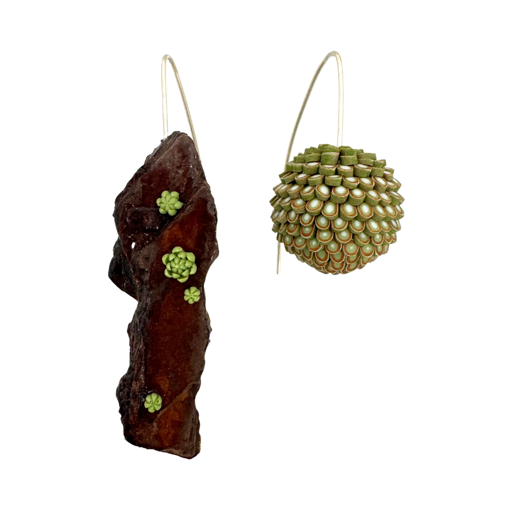 Polymer clay, handmade silver hooks, liquid Sculpey clay, UV resin, wood, glue gel